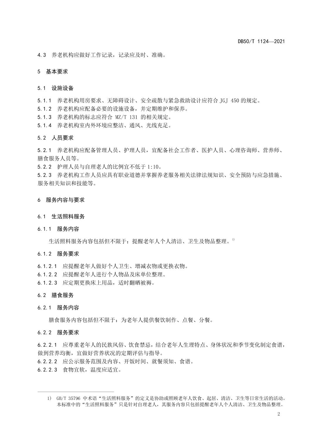 DB50/T 1124-2021 养老机构自理老人服务规范