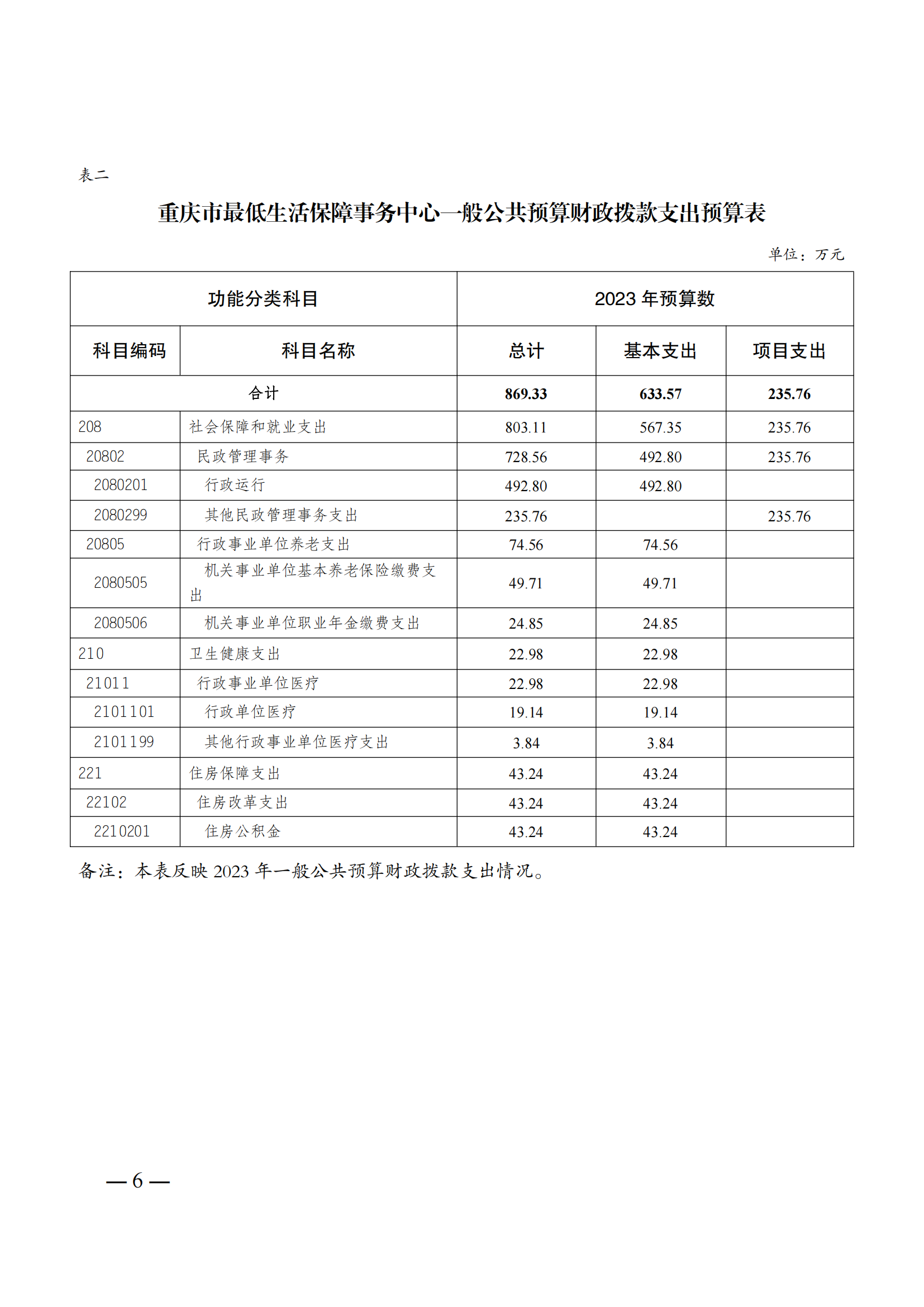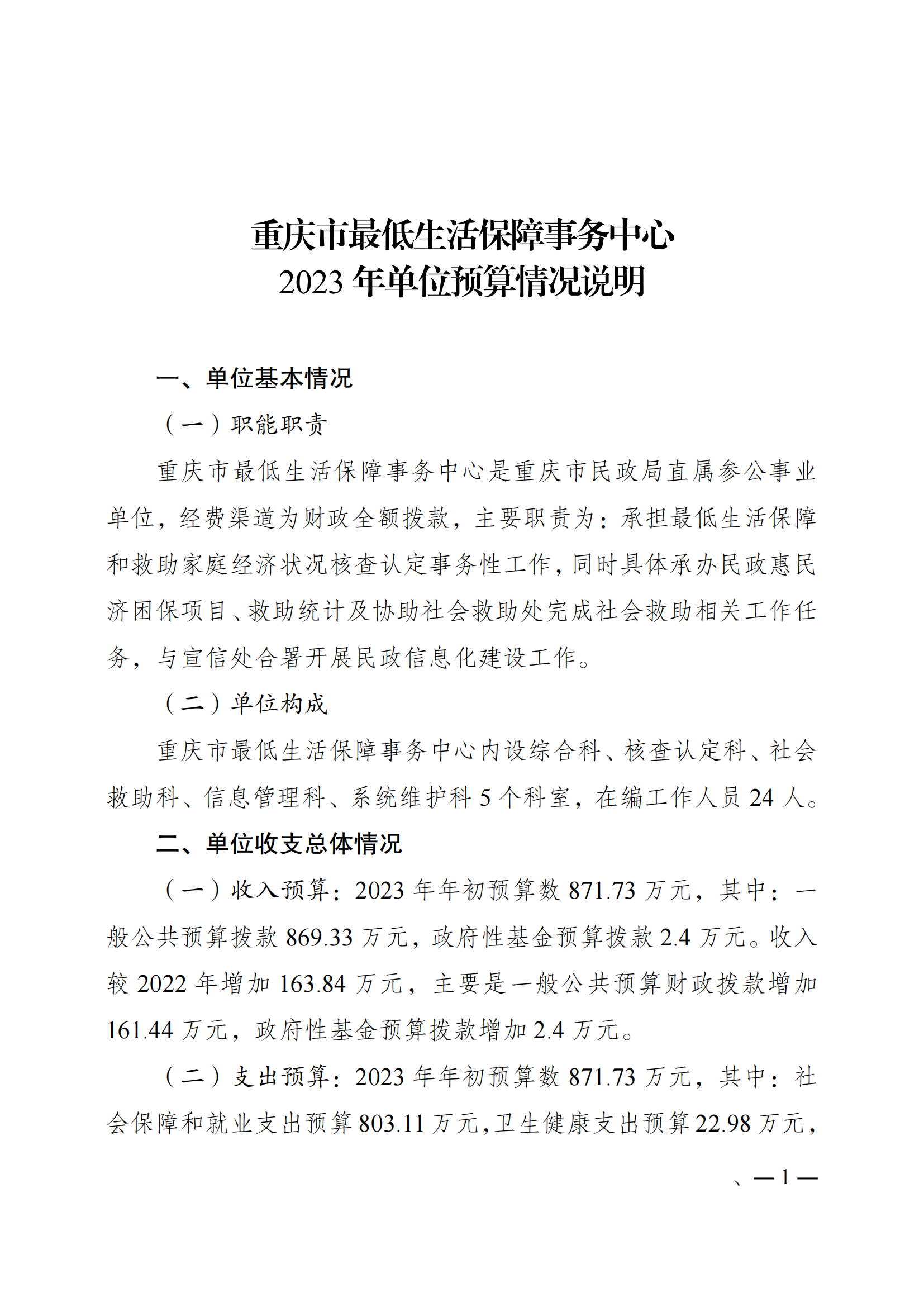 重庆市最低生活保障事务中心2023年单位预算情况说明