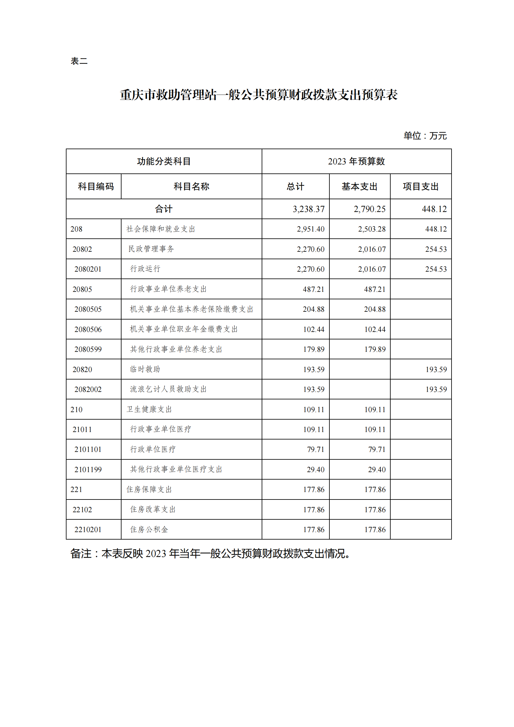 重庆市救助管理站2023年单位预算情况说明