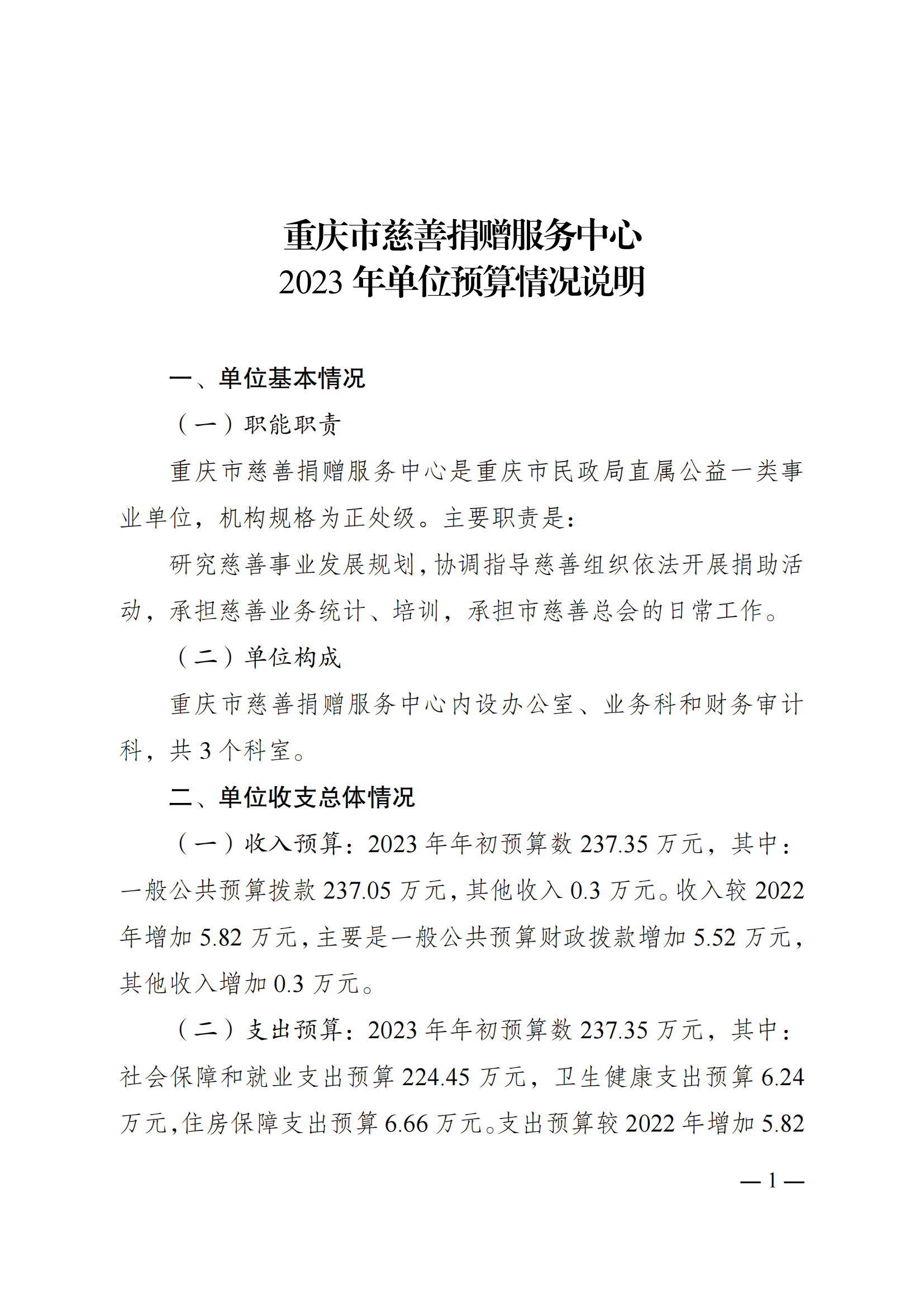 - 重庆市慈善捐赠服务中心2023年单位预算情况说明
