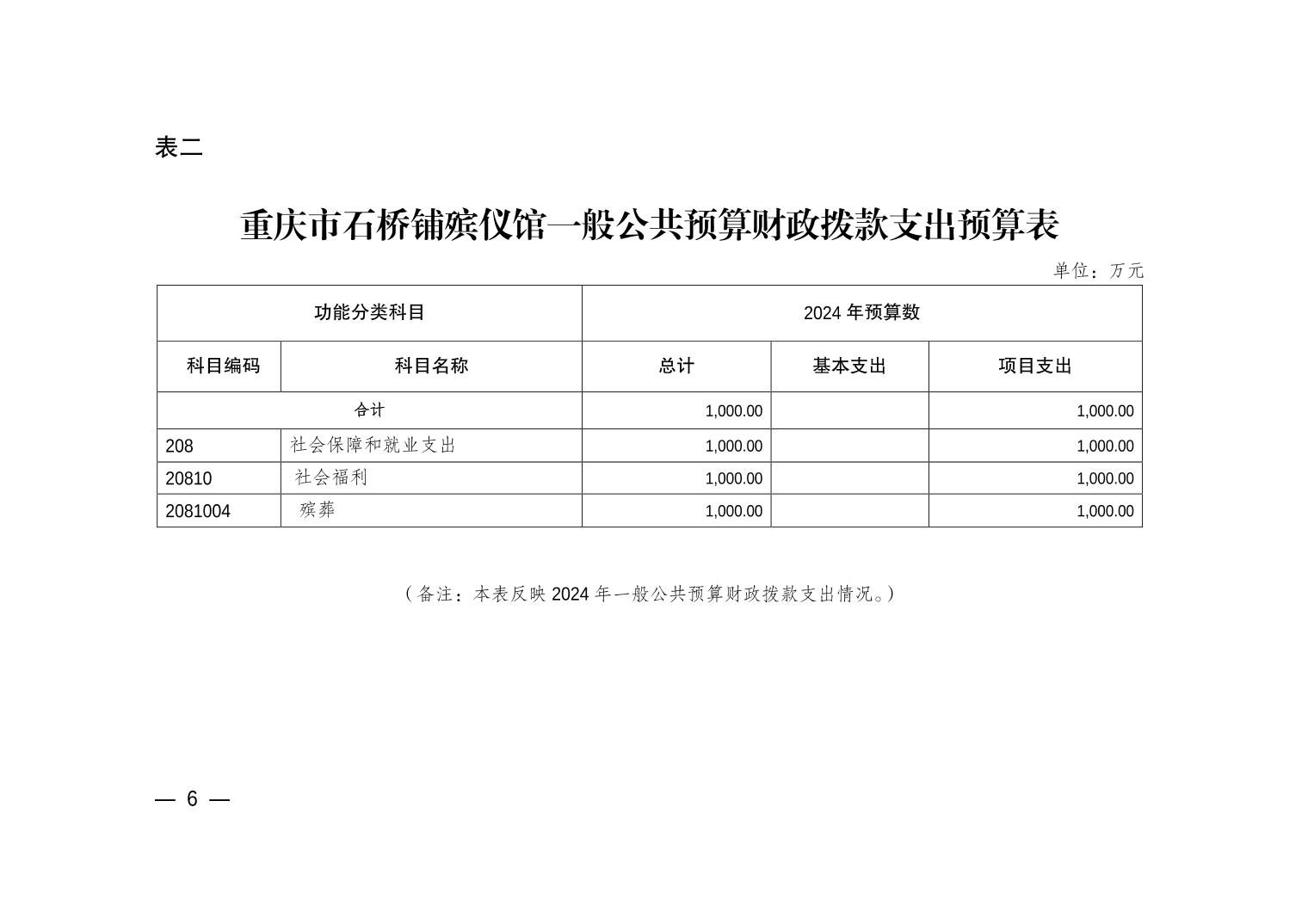 - 重庆市石桥铺殡仪馆2024年单位预算情况说明