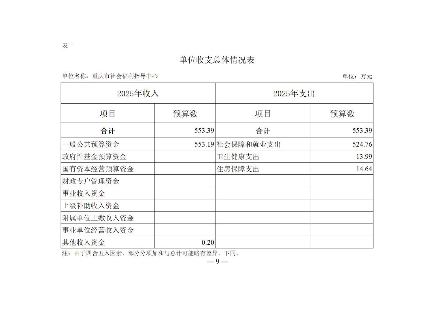 重庆市社会福利指导中心2025年单位预算情况说明